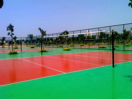 硅PU球場:硅PU球場材料(SPU)是在PU球場材料的基礎上開發研制出來的新一代球場鋪面材料。該材料是以聚氨酯(PU)材料與含有有機硅成分的材料科學地復合在一起,所生產出來的材料用在球場面層上,從根本上有效地解決了PU球場材料在專業性能、環保施工、使用壽命、日常維護等方面的不足,具有革命性的創新性能。由有機硅改性聚氨酯材料作為涂料,分多層(底涂、彈性層、加強層、面層)涂刮而成的新型塑膠球場;具有上彈下彈結構特征,屬于一種健康型專業彈性合成球場地面系統。